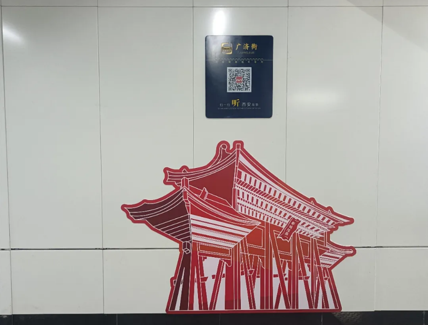 随着人们阅读习惯的改变和网络应用愈发广泛,语音故事库除了在相关车站不间断播放外,西安市轨道交通集团还通过设置二维码铭牌,让乘客出行途中一扫即听。同时结合车站周边历史文化典故和出行服务指南,在二维码铭牌下设置醒目的剪影画面,让属于古城的独特传统文化符号和现代元素和谐共生。